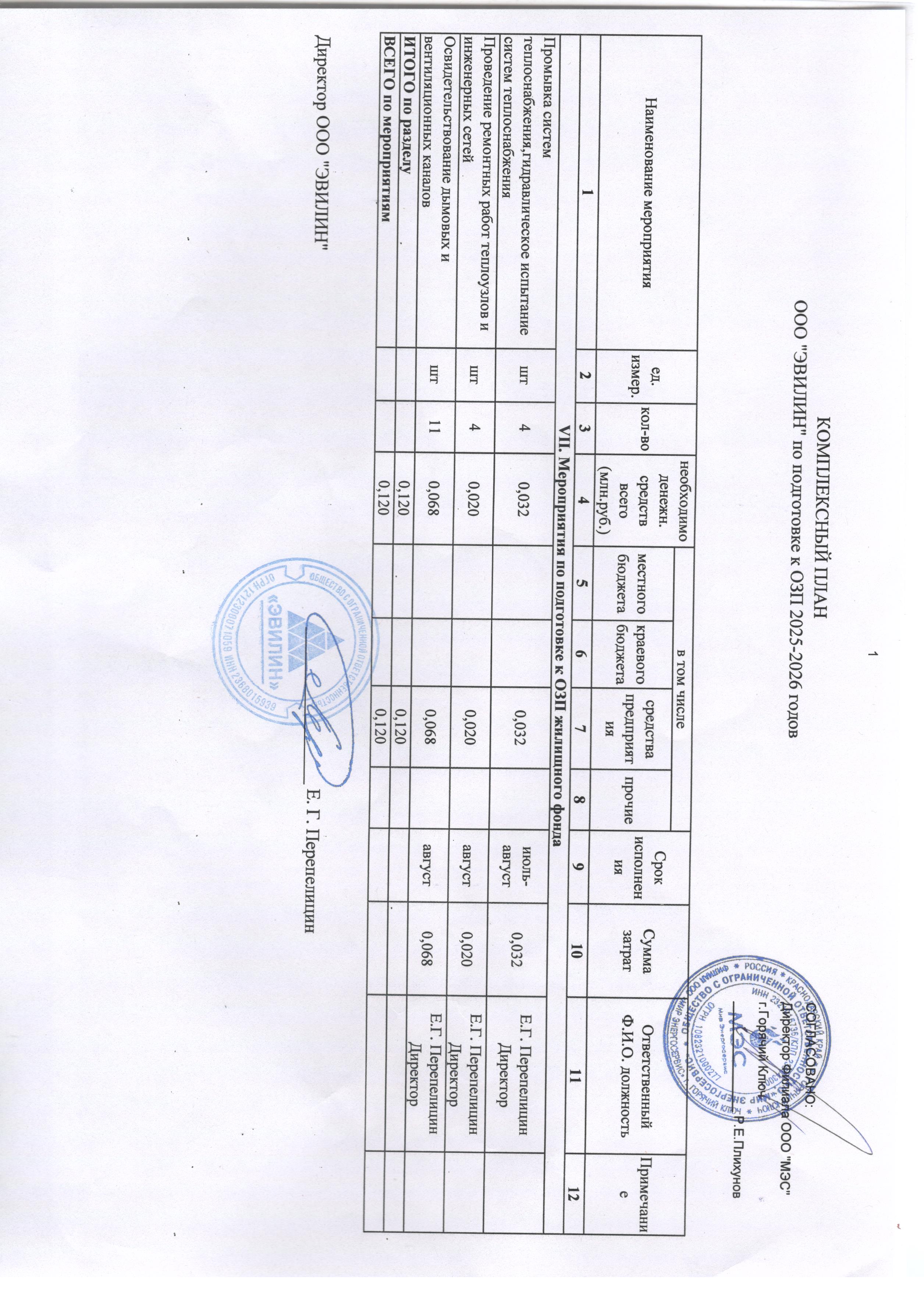 План подготовки к отопительному периоду 2025-2026 гг. ООО Эвилин